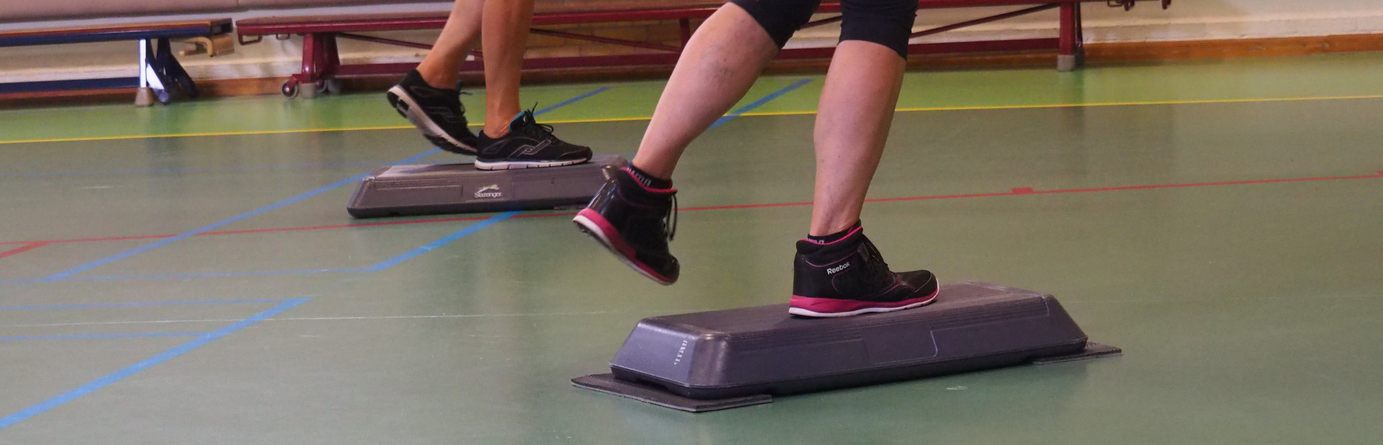 Waarbij de les bestaat uit een half uur steppen en een half uur Total Body Shape, ook wel oefeningen voor het hele lichaam. Ik doe dat twee uur in de week.